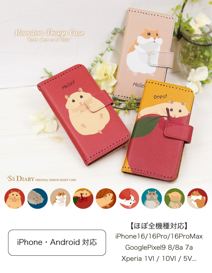 ハムスター 手帳型ケース 多機種対応 ゴールデン ジャンガリアン キンクマ