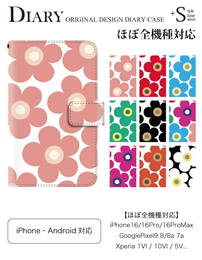 フラワーデザイン 手帳型ケース 多機種対応 花 シンプル スマホカバー