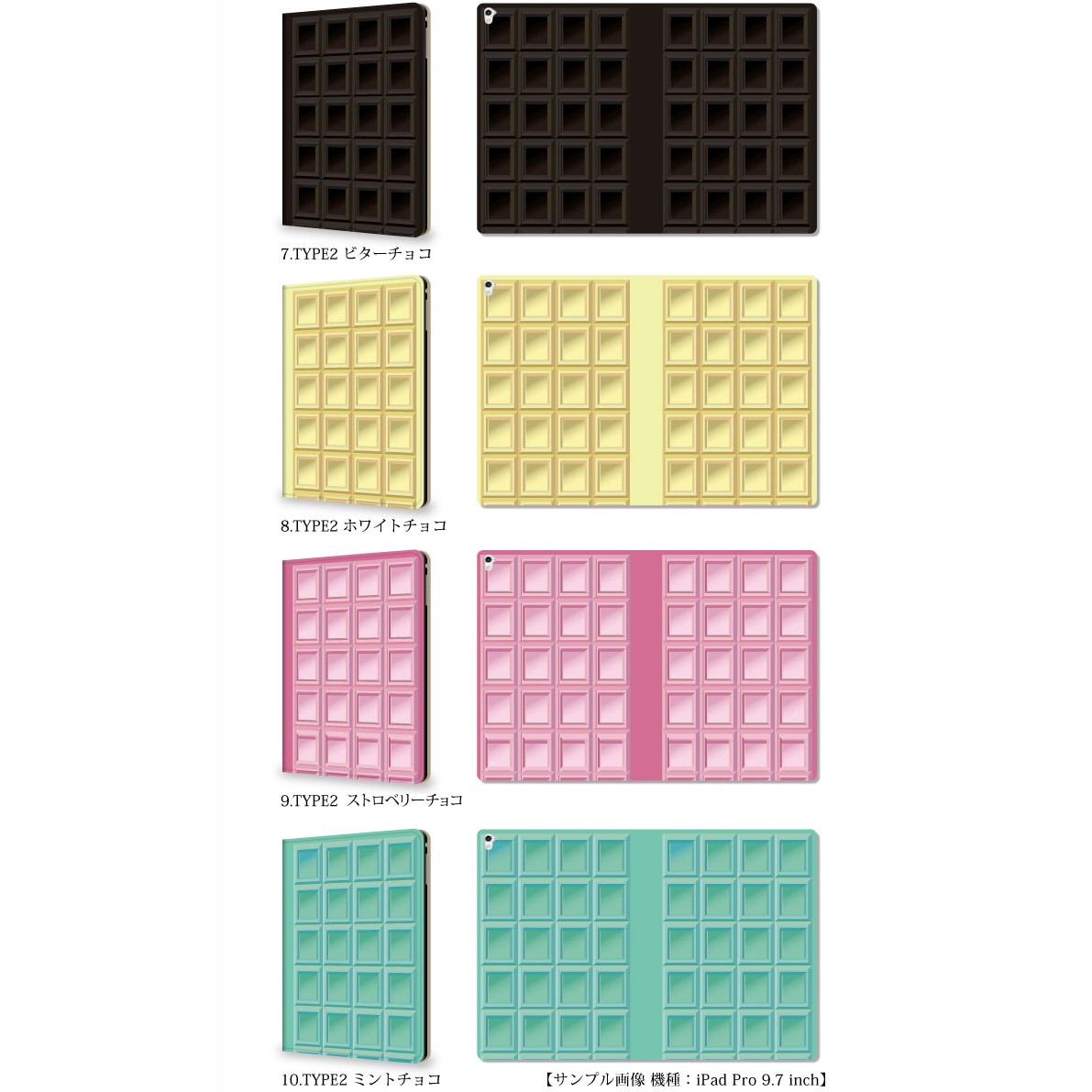 【iPad】チョコレート 手帳型ケース 食べ物 お菓子 スイーツ スタンド機能 ミルクチョコ ビター ストロベリー ミント ipad 第9/8/7/6世代 ipad air 5/4/3 ipad mini 5/4 ipad Pro 12.9/11/10.2/9.7/7.9インチ アイパッド