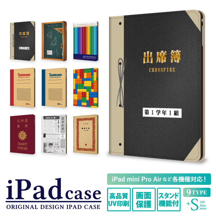 【iPad】おもしろネタデザイン 手帳型ケース なつかし スタンド機能 出席簿 色鉛筆 ノート パスポート 黒板 新聞 学校 ipad 第9/8/7/6世代 ipad air 5/4/3 ipad mini 5/4 ipad Pro 12.9/11/10.2/9.7/7.9インチ アイパッド
