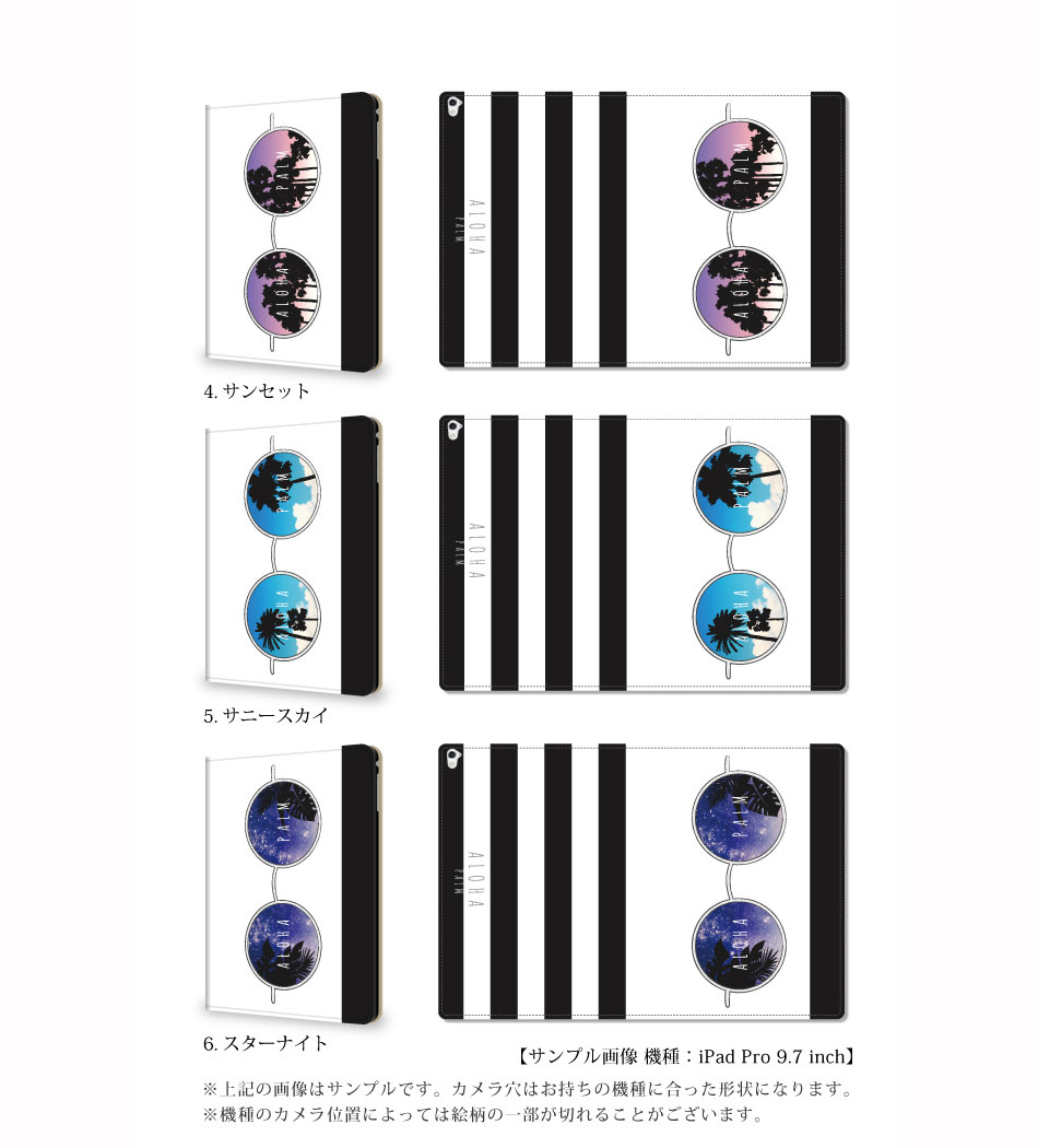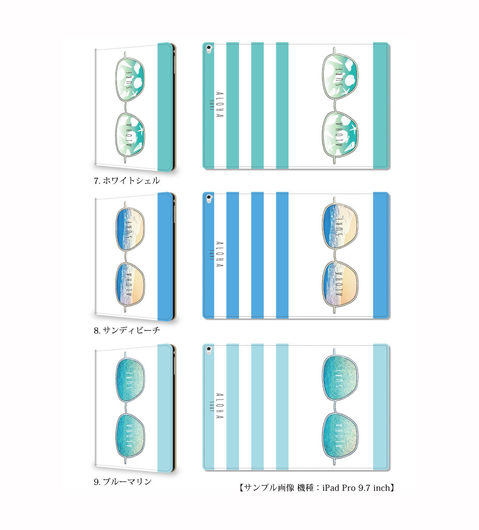 【iPad】ハワイアンサングラス 手帳型ケース ストライプ めがね 南国 ビーチ スタンド機能 ipad 第9/8/7/6世代 ipad air 5/4/3 ipad mini 5/4 ipad Pro 12.9/11/10.2/9.7/7.9インチ アイパッド