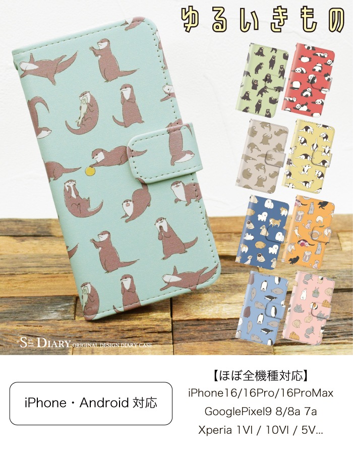 ゆるいきもの 手帳型ケース 多機種対応 動物 アニマル 犬 猫 うさぎ カワウソ