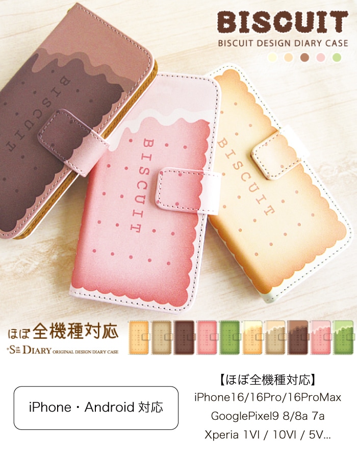 ビスケットデザイン 手帳型ケース 多機種対応 お菓子 スイーツ 食べ物