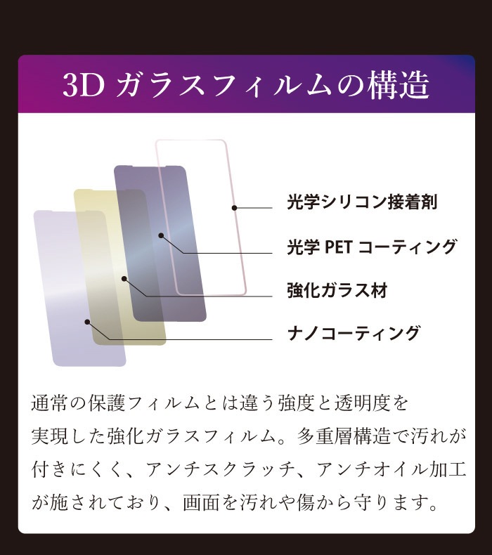 3Dラウンドエッジ加工により、液晶部分をフルカバー。