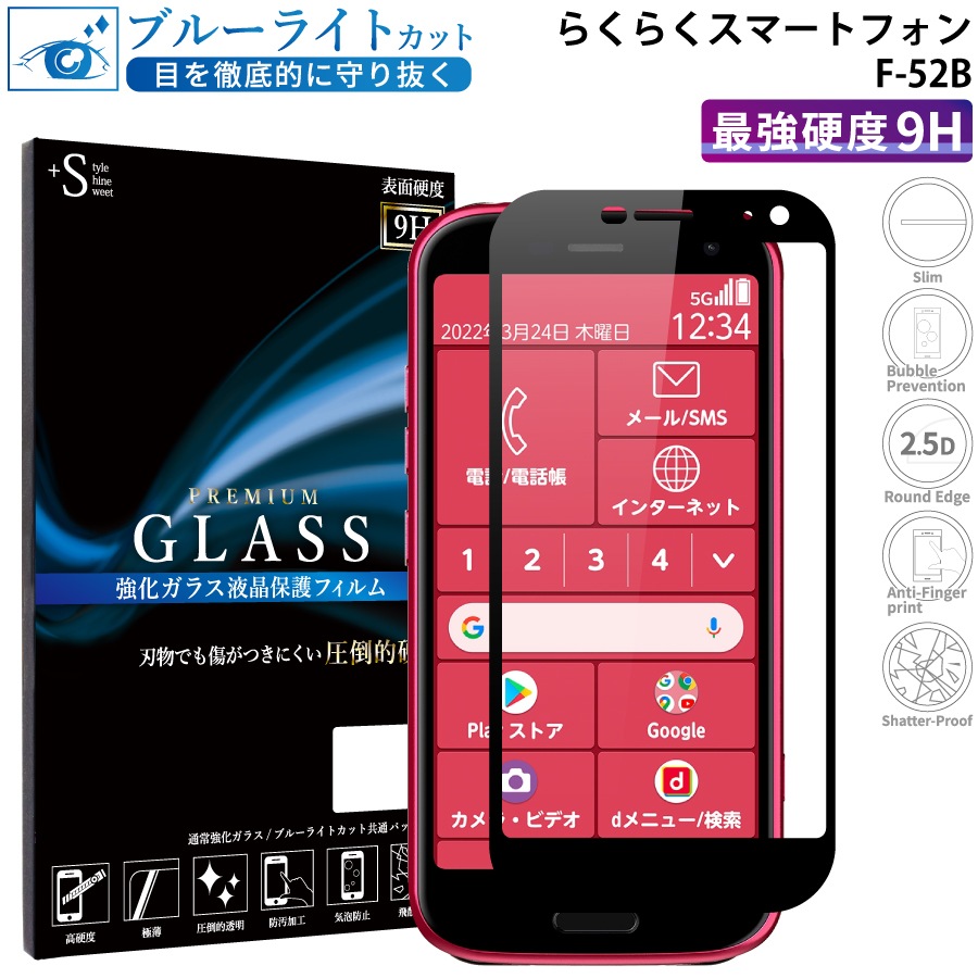 【2.5D ブルーライトカット】強化ガラスフィルム らくらくスマートフォン F-52B ラウンドエッジ 耐衝撃 硬度9H 指紋防止