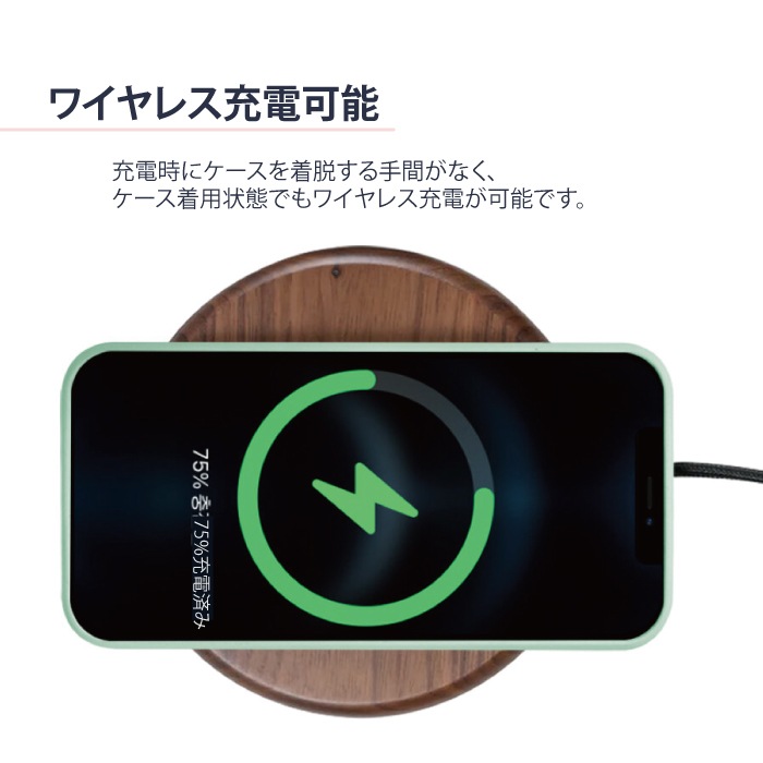 ケースを着用したままでもワイヤレス充電をすることが可能です。