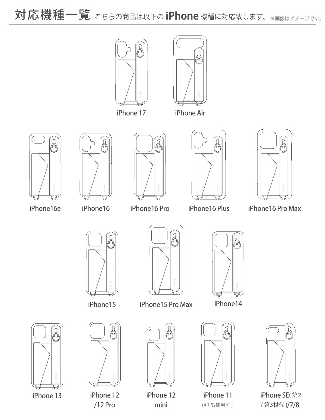 iPhone15, iPhone15Plus, iPhone15ProMax, iPhone14, iPhone14Plus, iPhone14ProMax, iPhone13, iPhone12, iPhone12Pro, iPhone12mini, iPhone11, iPhone SE(第2/3世代), iPhone8, iPhone7