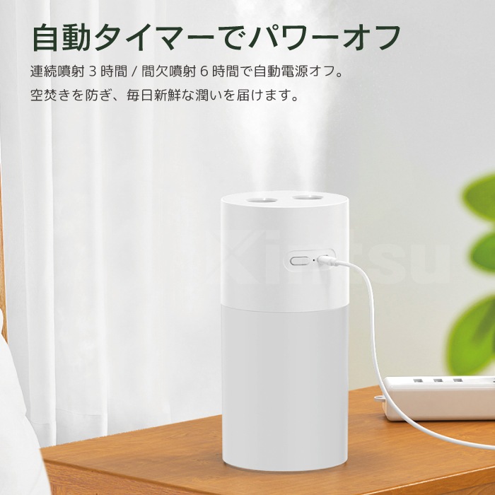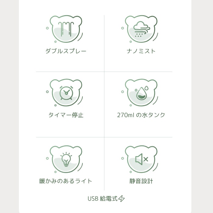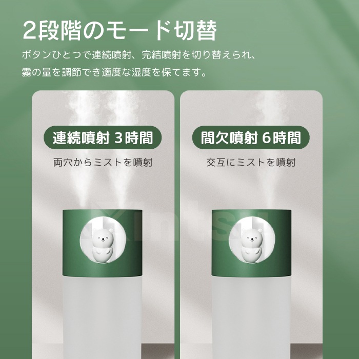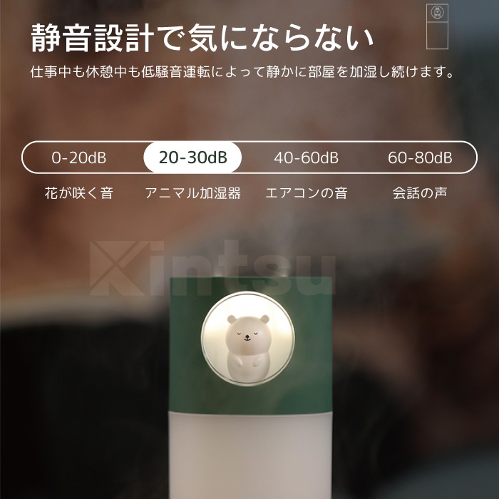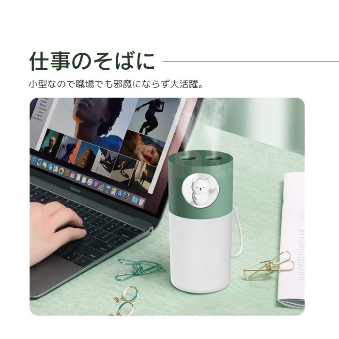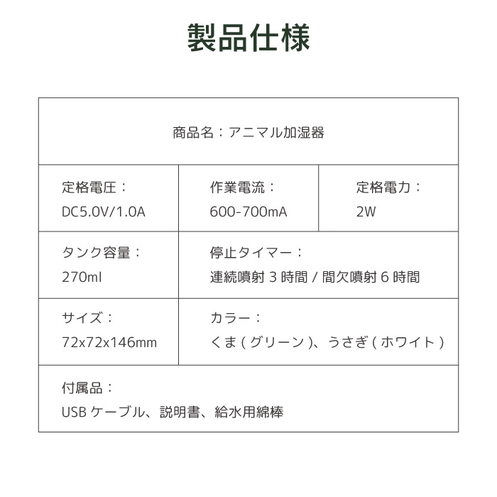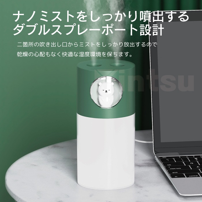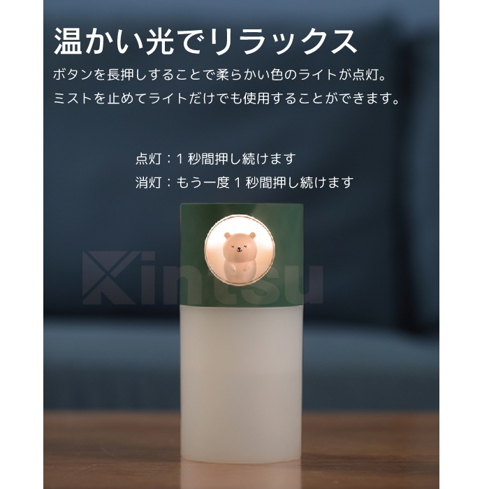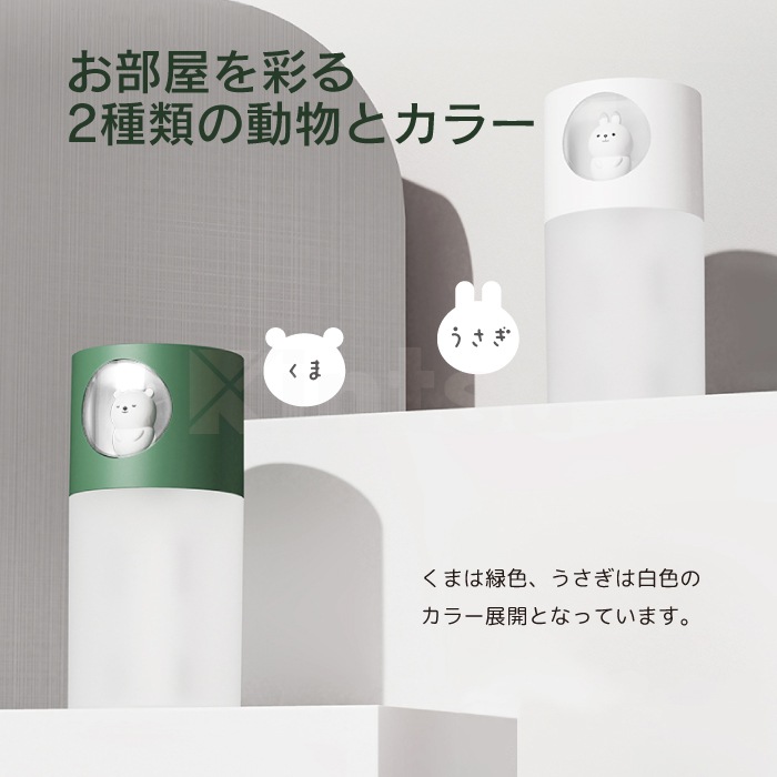 アニマル加湿器 超音波式 卓上 コンパクト 小型 くま うさぎ 静音 温色ライト付き USB給電 自動タイマー
