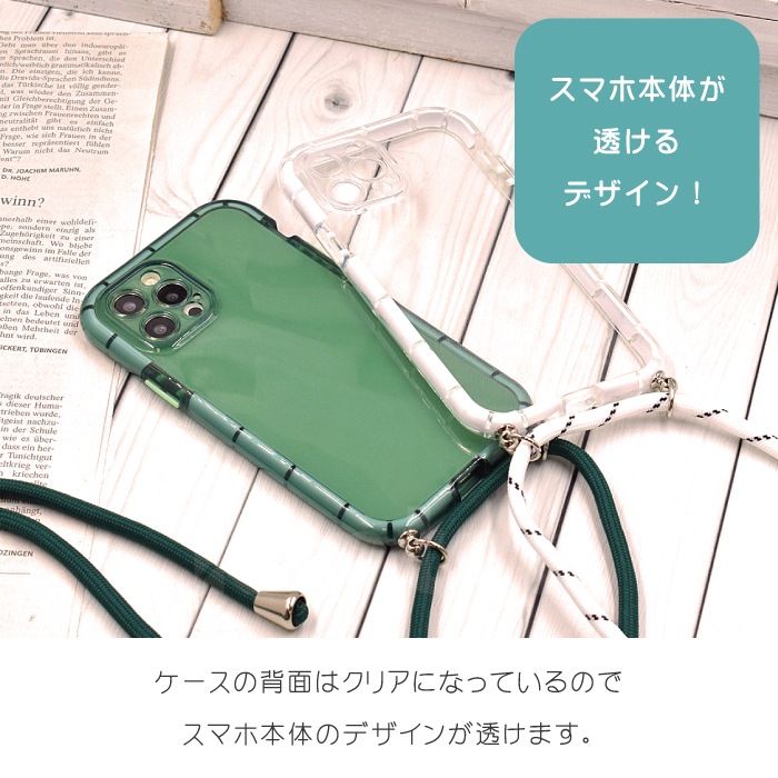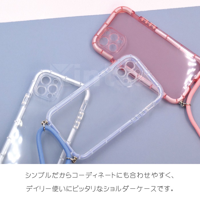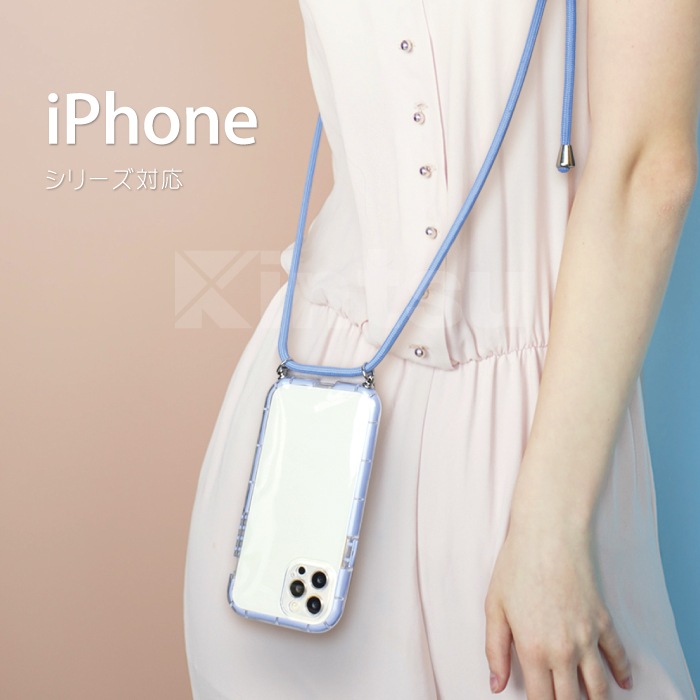 クリアカラーショルダーケース ロングストラップ付き iPhoneシリーズ対応 iPhone 14 Plus/Pro/ProMax 13 12/12 Pro 11 スマホケース