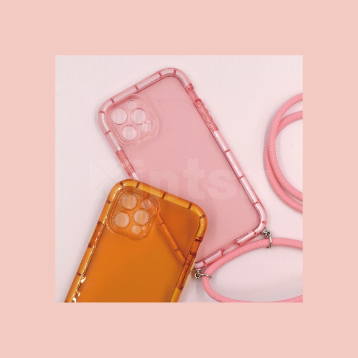 シンプルでお洒落な透明デザインのストラップ付きショルダースマホケースです。