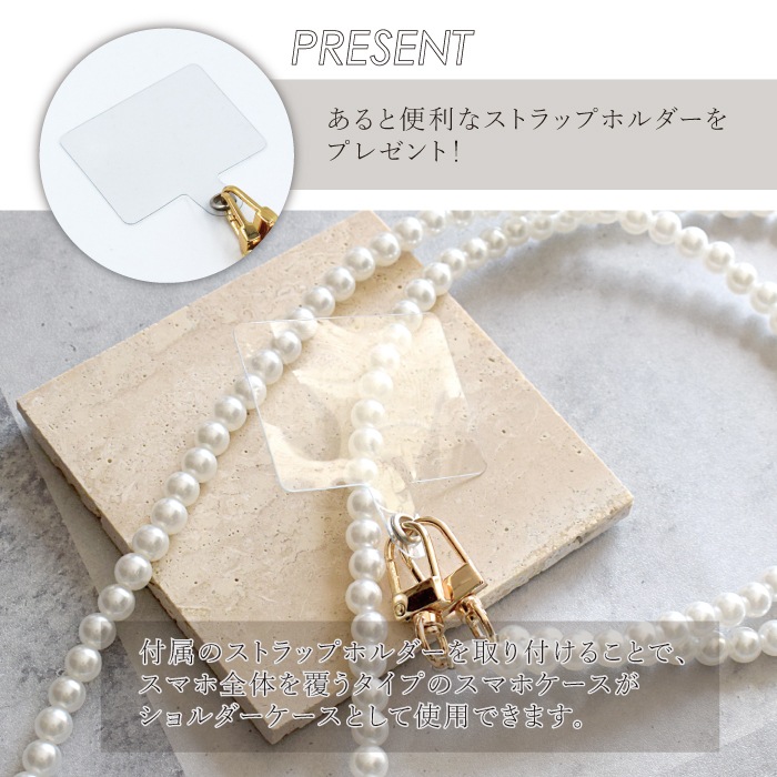 パールストラップ ストラップホルダー付き スマホショルダー 肩掛け 斜め掛け 携帯ストラップ