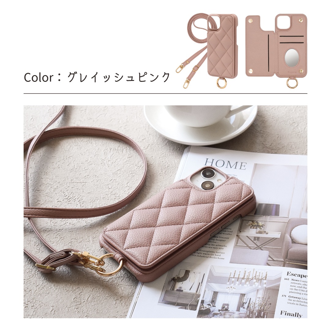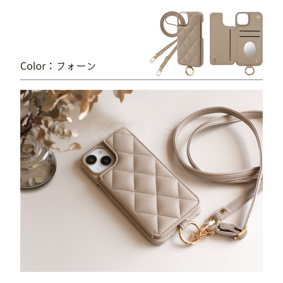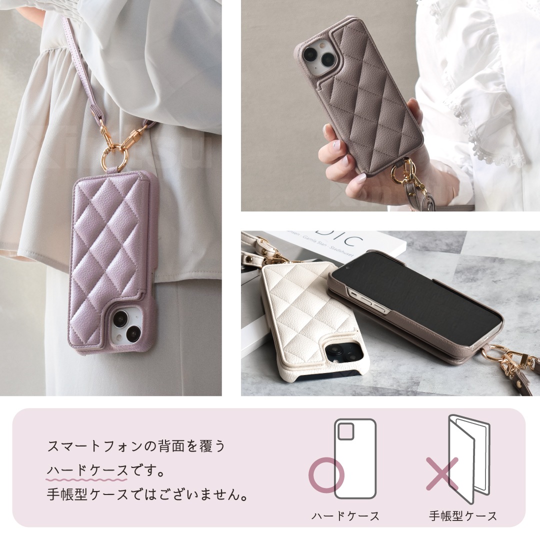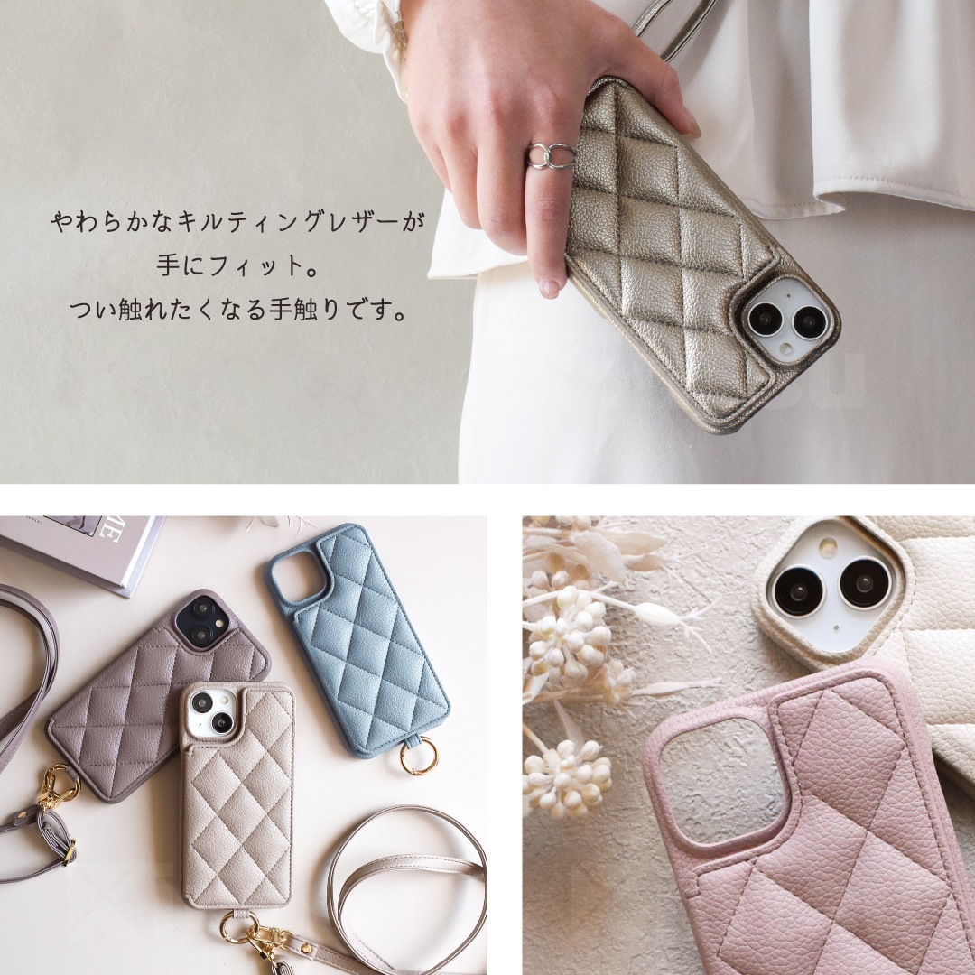 Elegante(エレガンテ)・キルティングショルダー ハードケース iPhoneシリーズ対応
