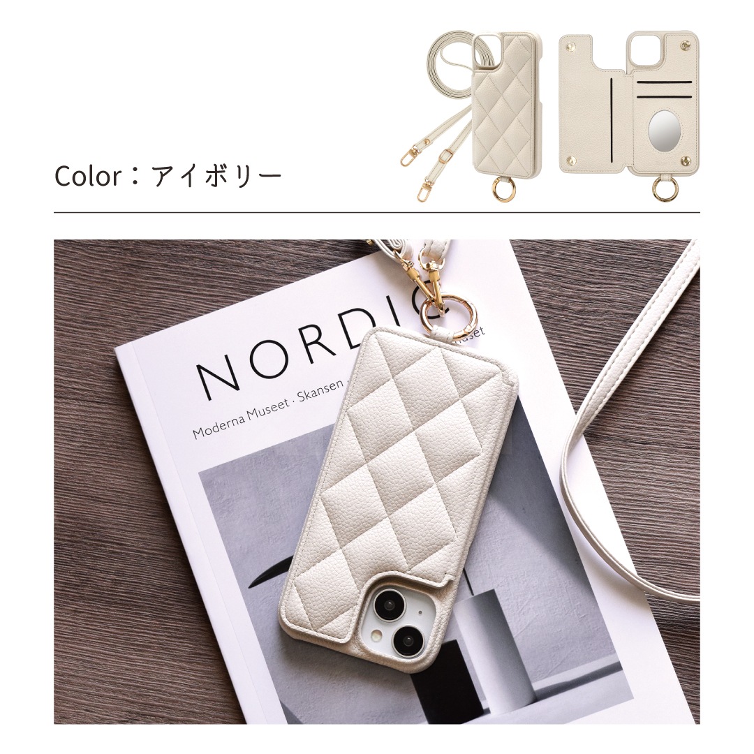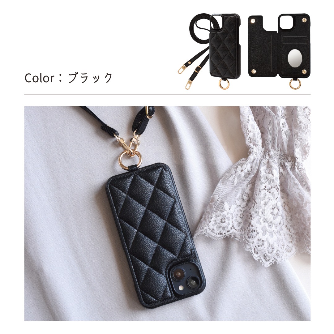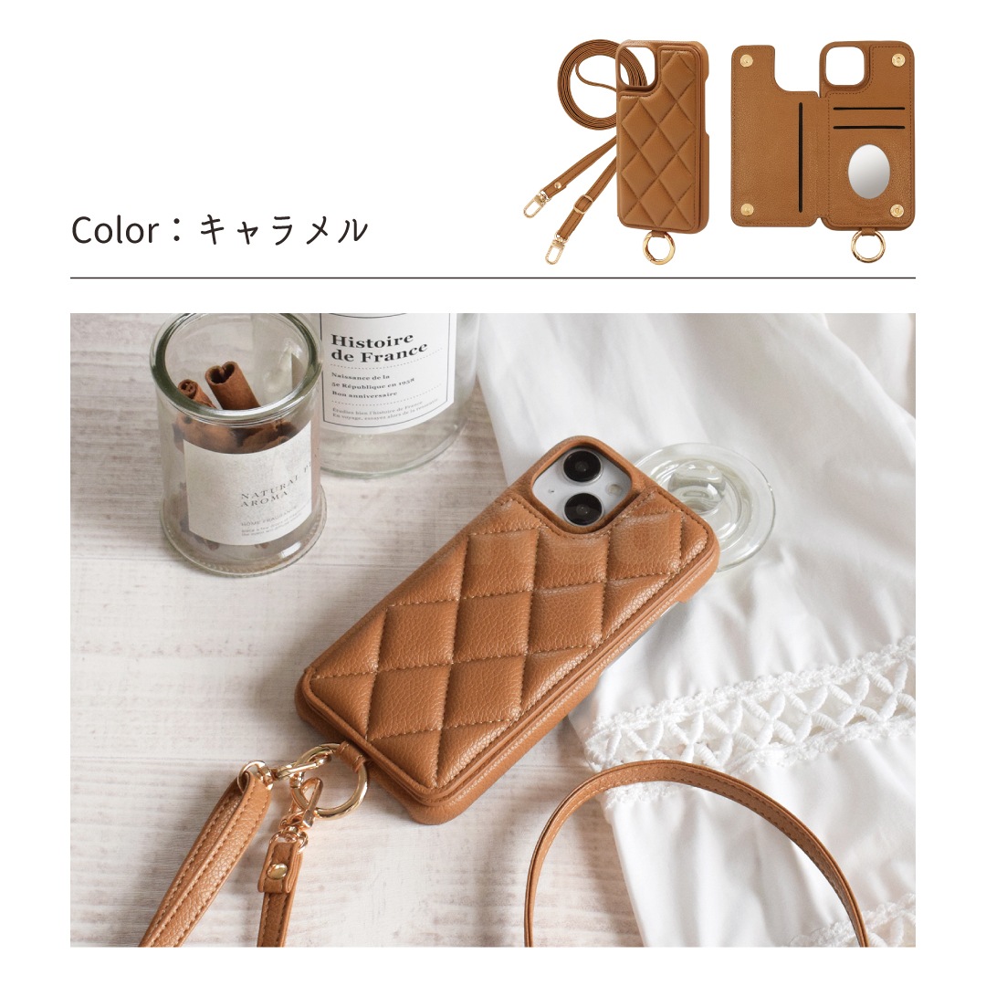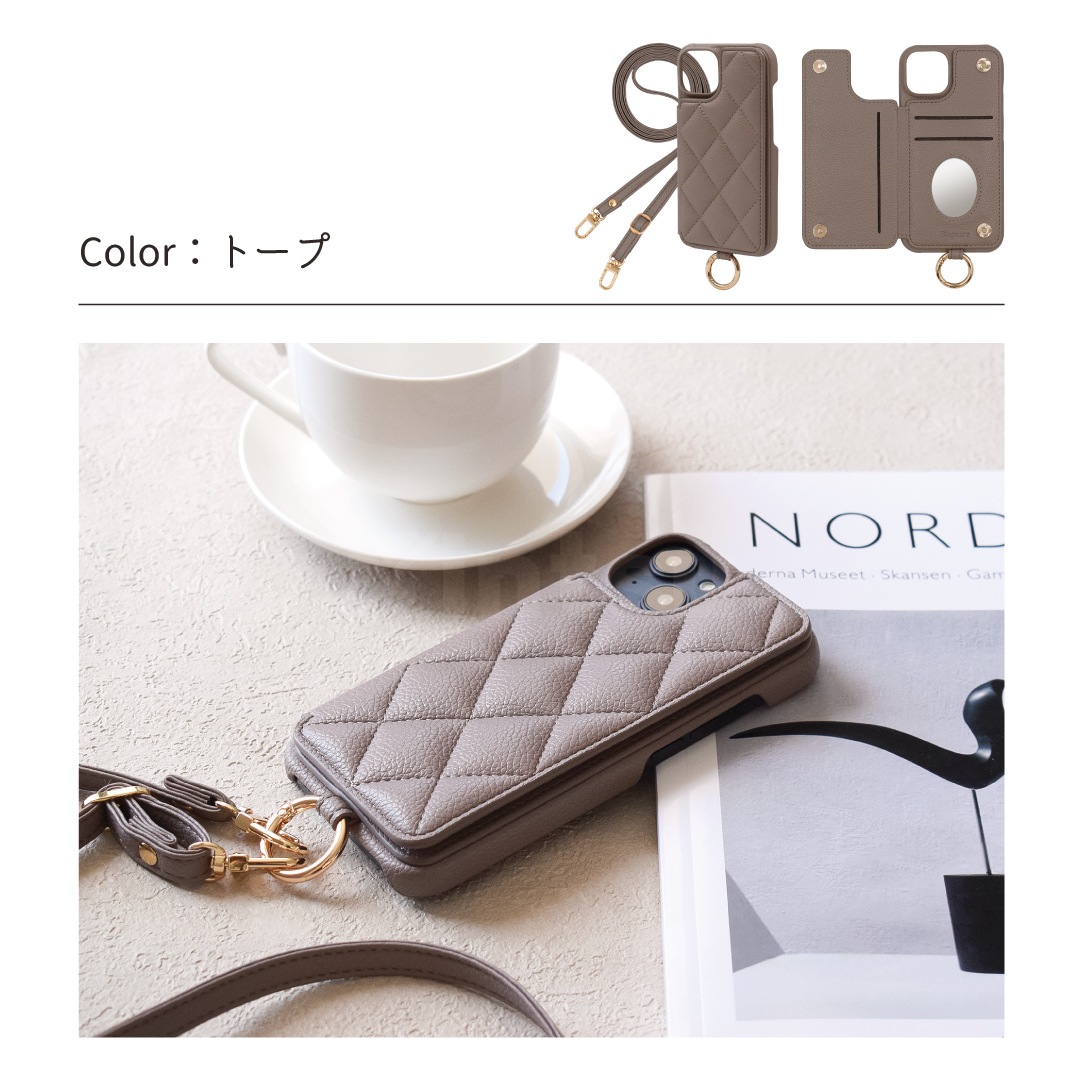Elegante(エレガンテ)・キルティングショルダー ハードケース iPhoneシリーズ対応