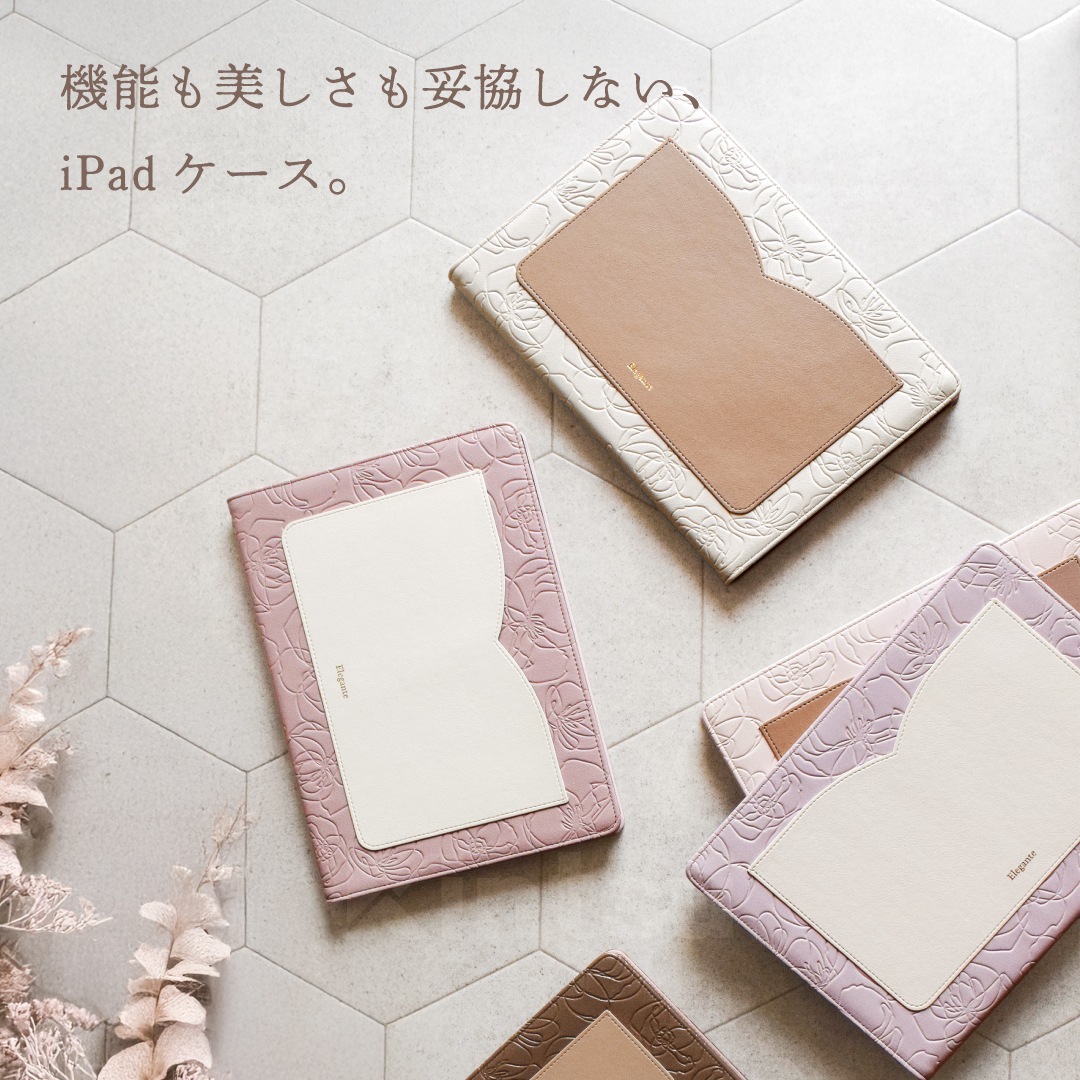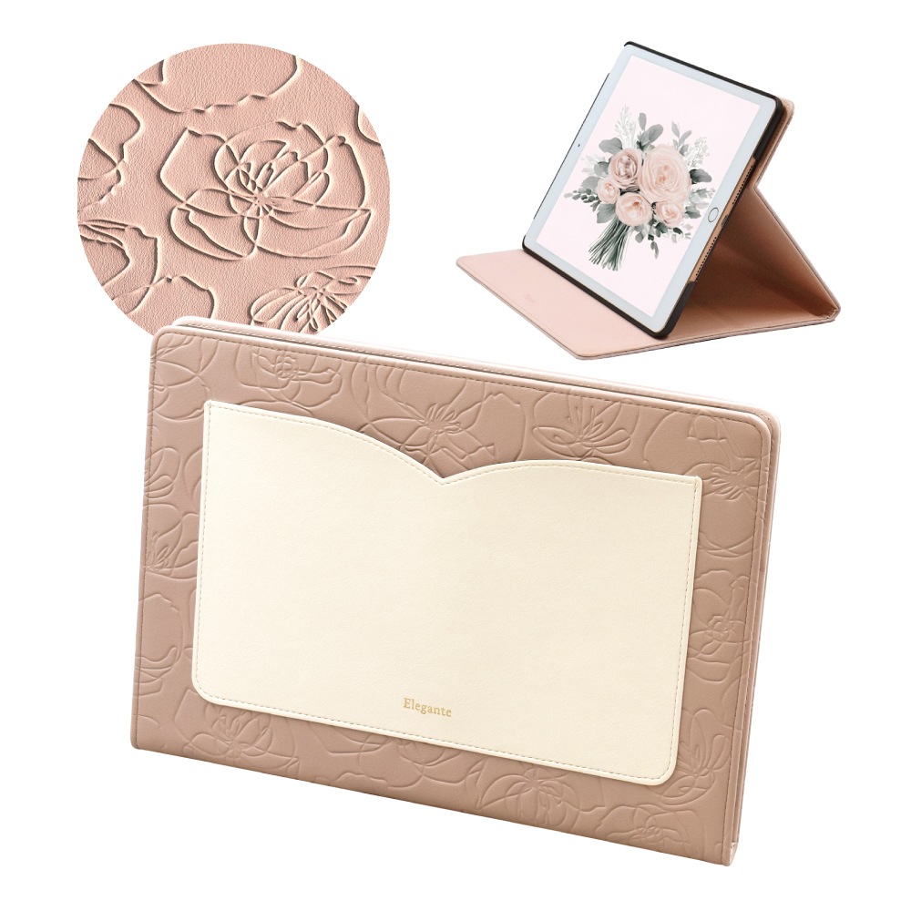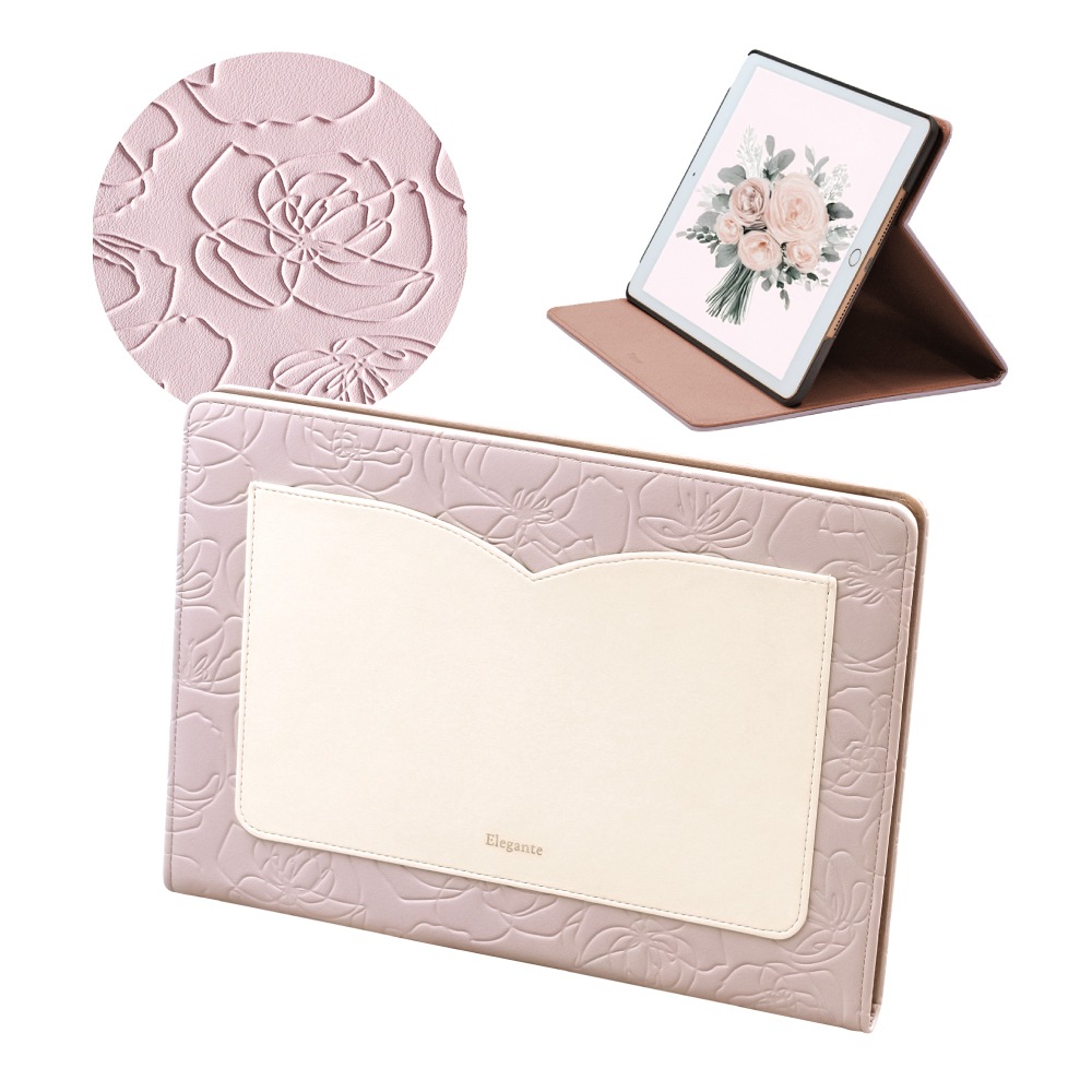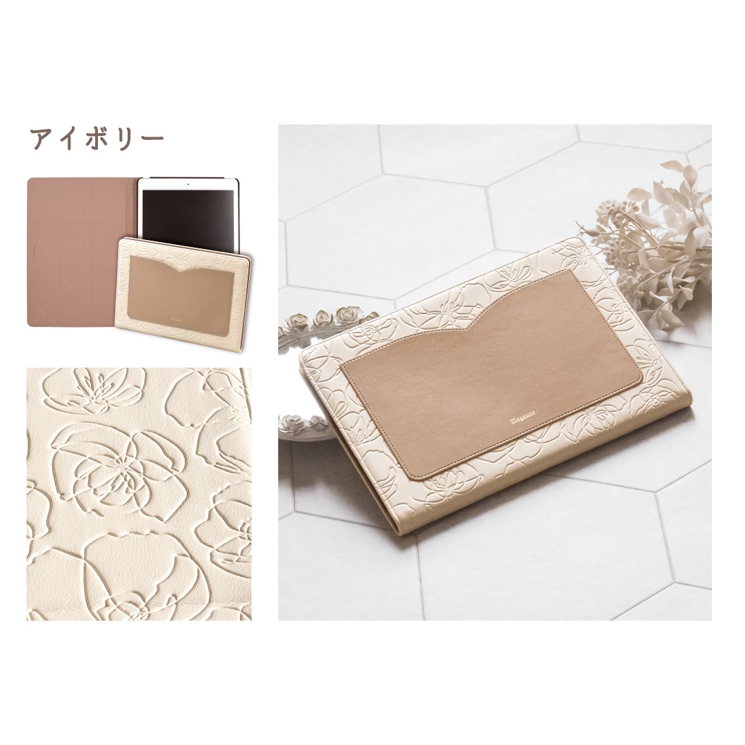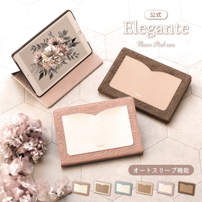 【iPad】Elegante(エレガンテ)・花柄 手帳型ケース スタンド機能 オートスリープ機能付き