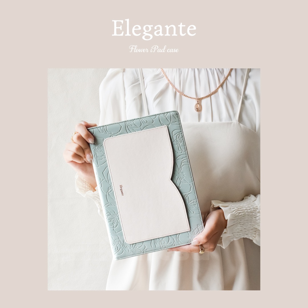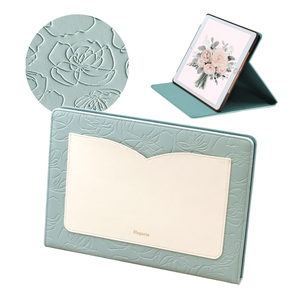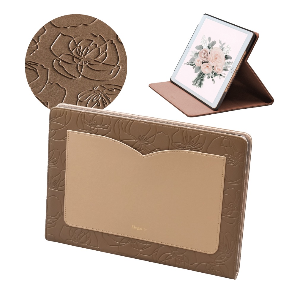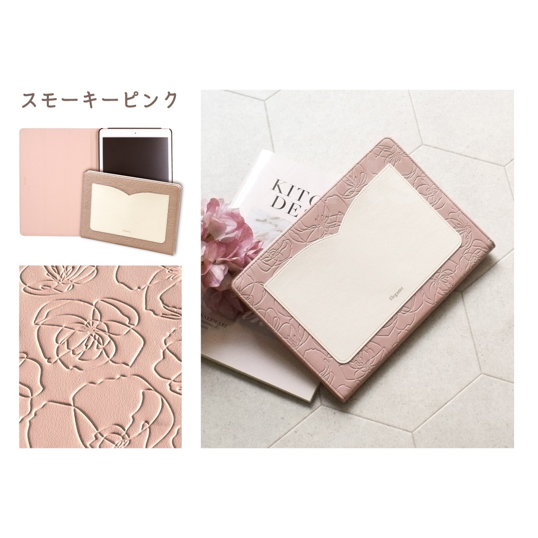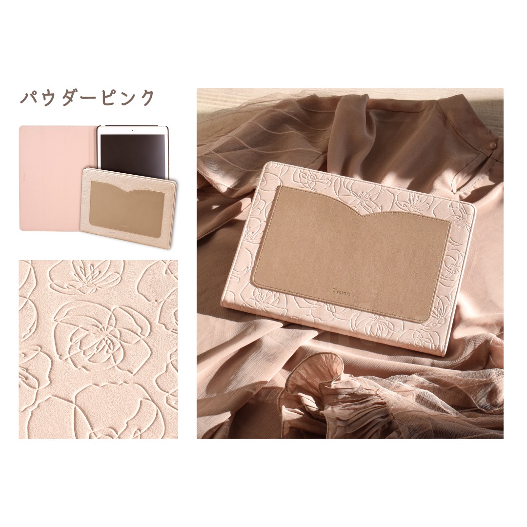 【iPad】Elegante(エレガンテ)・花柄 手帳型ケース スタンド機能 オートスリープ機能付き