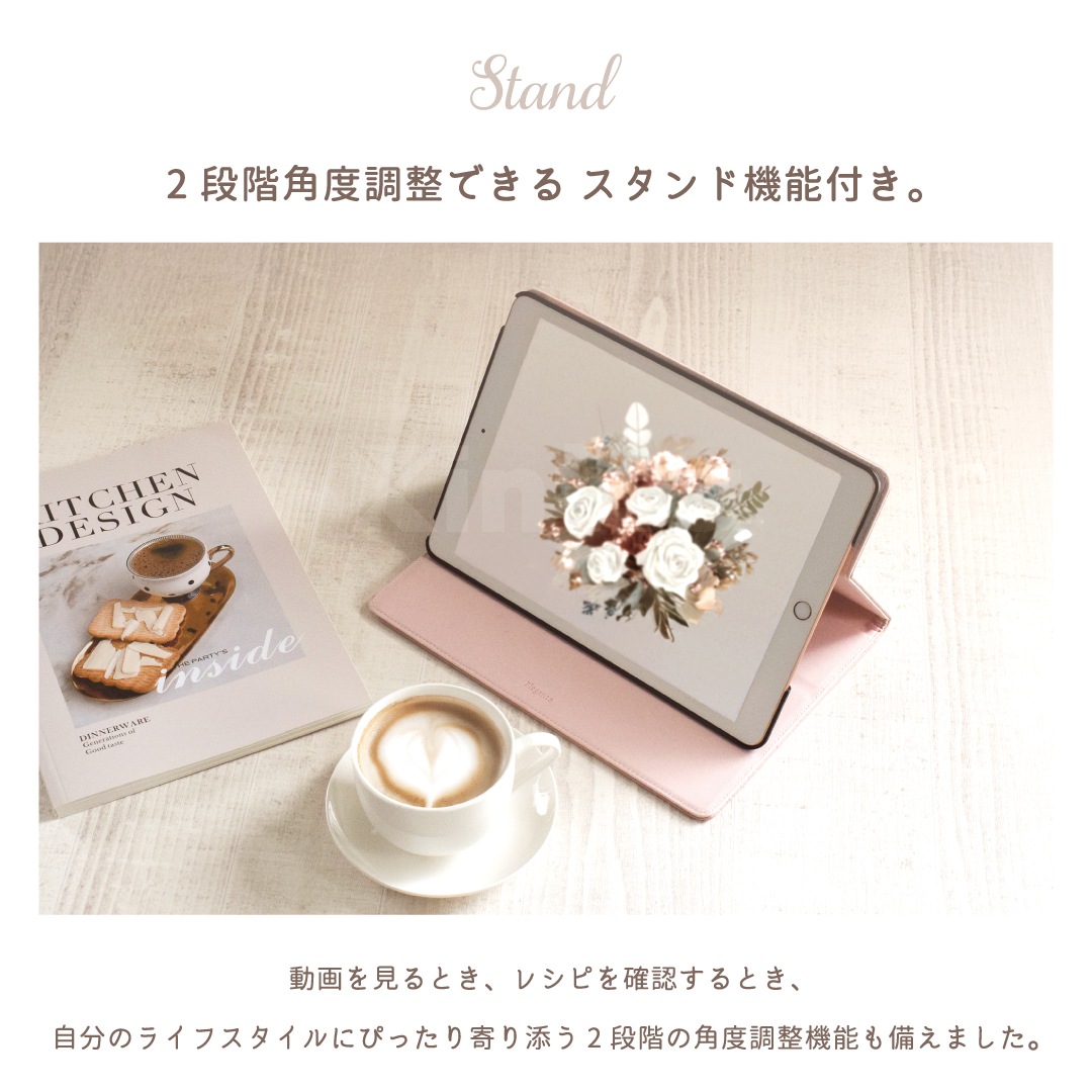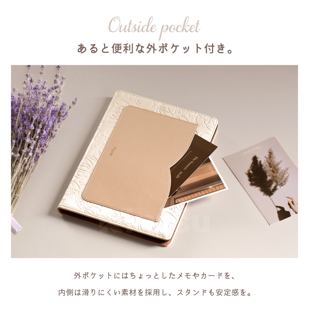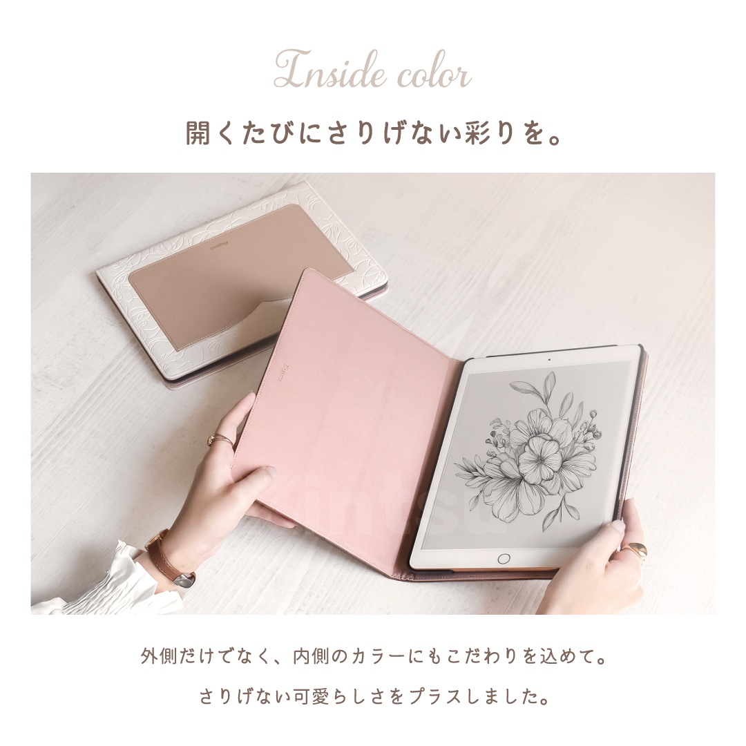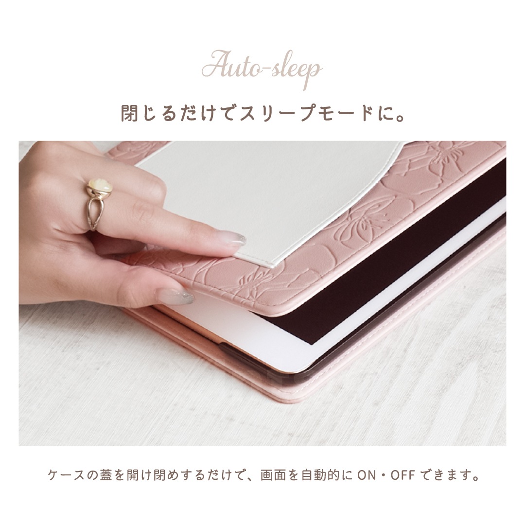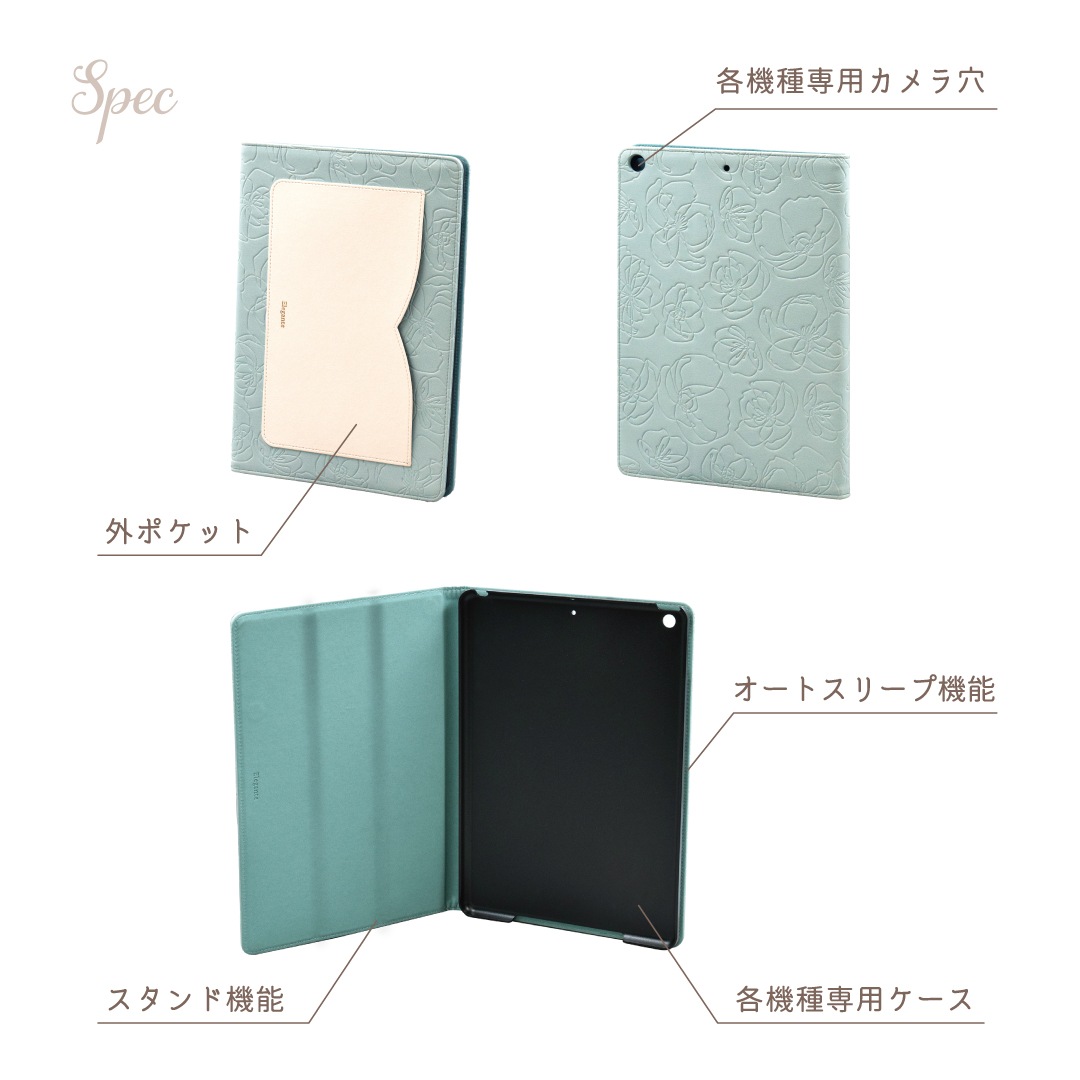 【iPad】Elegante(エレガンテ)・花柄 手帳型ケース スタンド機能 オートスリープ機能付き