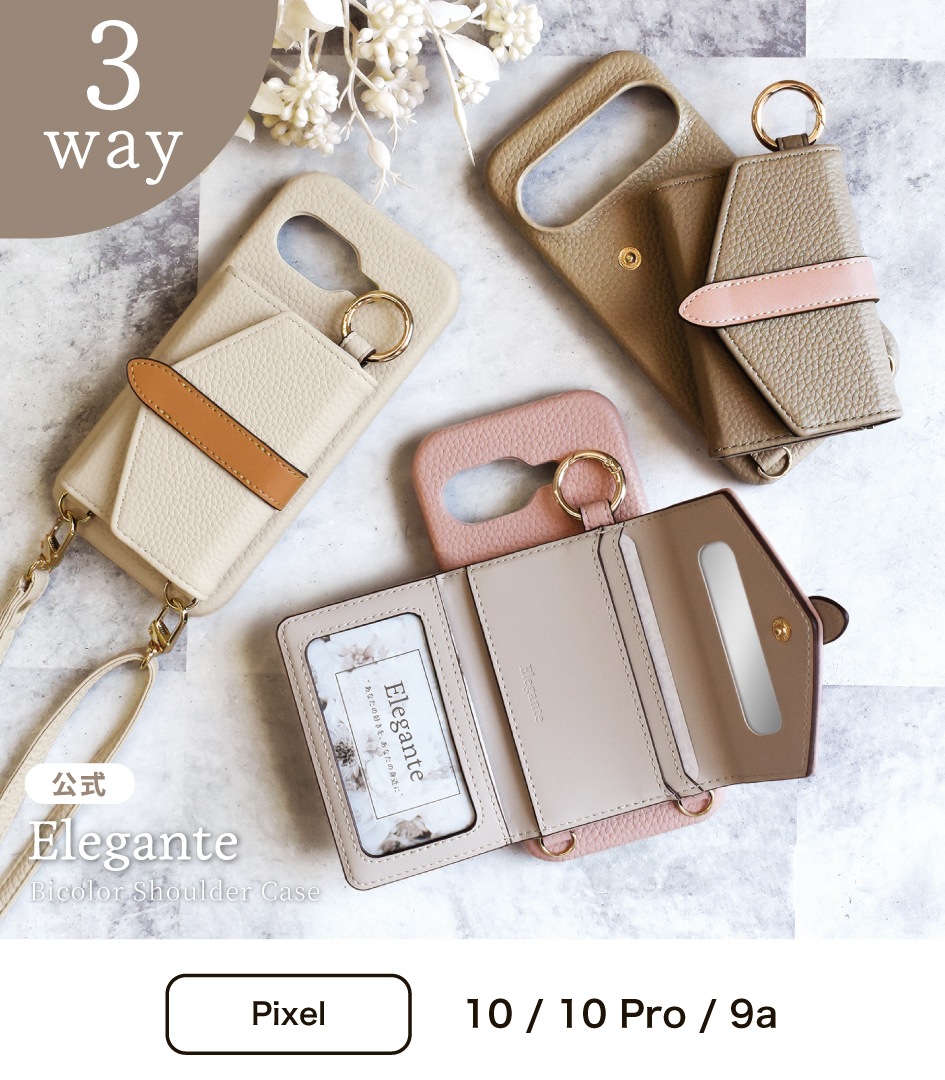 Elegante(エレガンテ)・バイカラーショルダーケース GooglePixel10 / 10Pro / 9a 対応