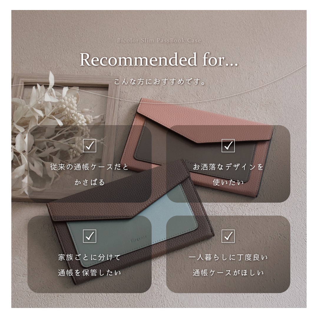 当店オリジナルブランド Elegante の薄型通帳ケース。